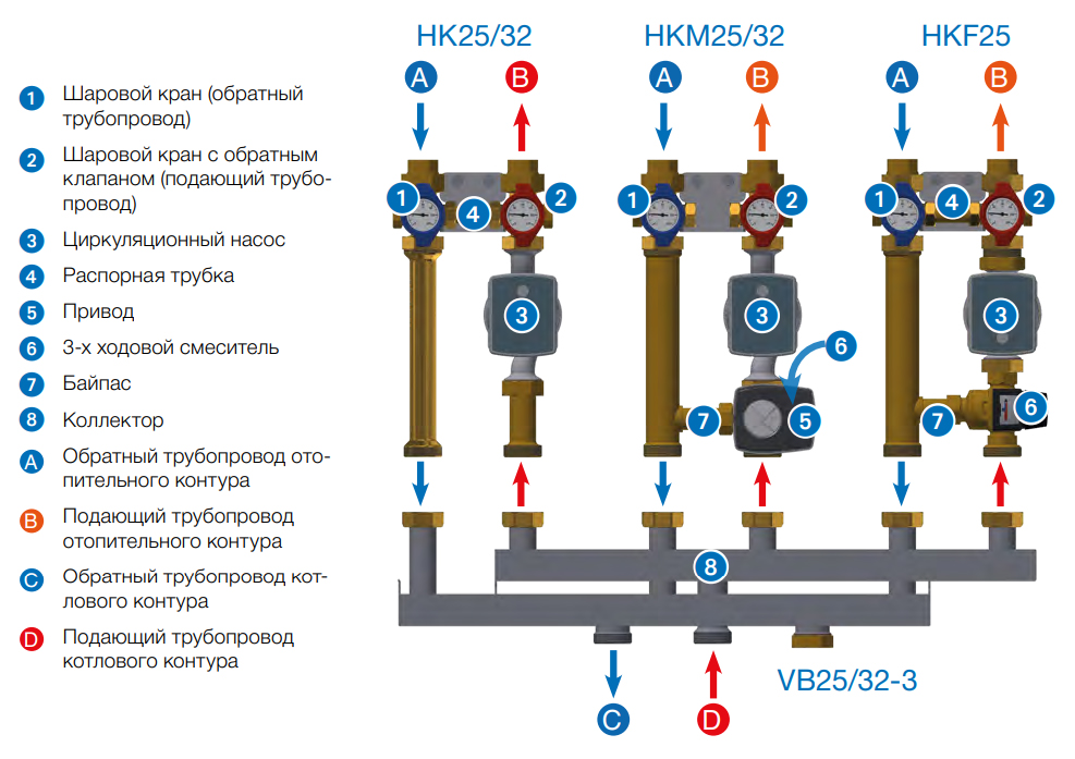 - распределение теплоносителя в системе отопления без смешивания