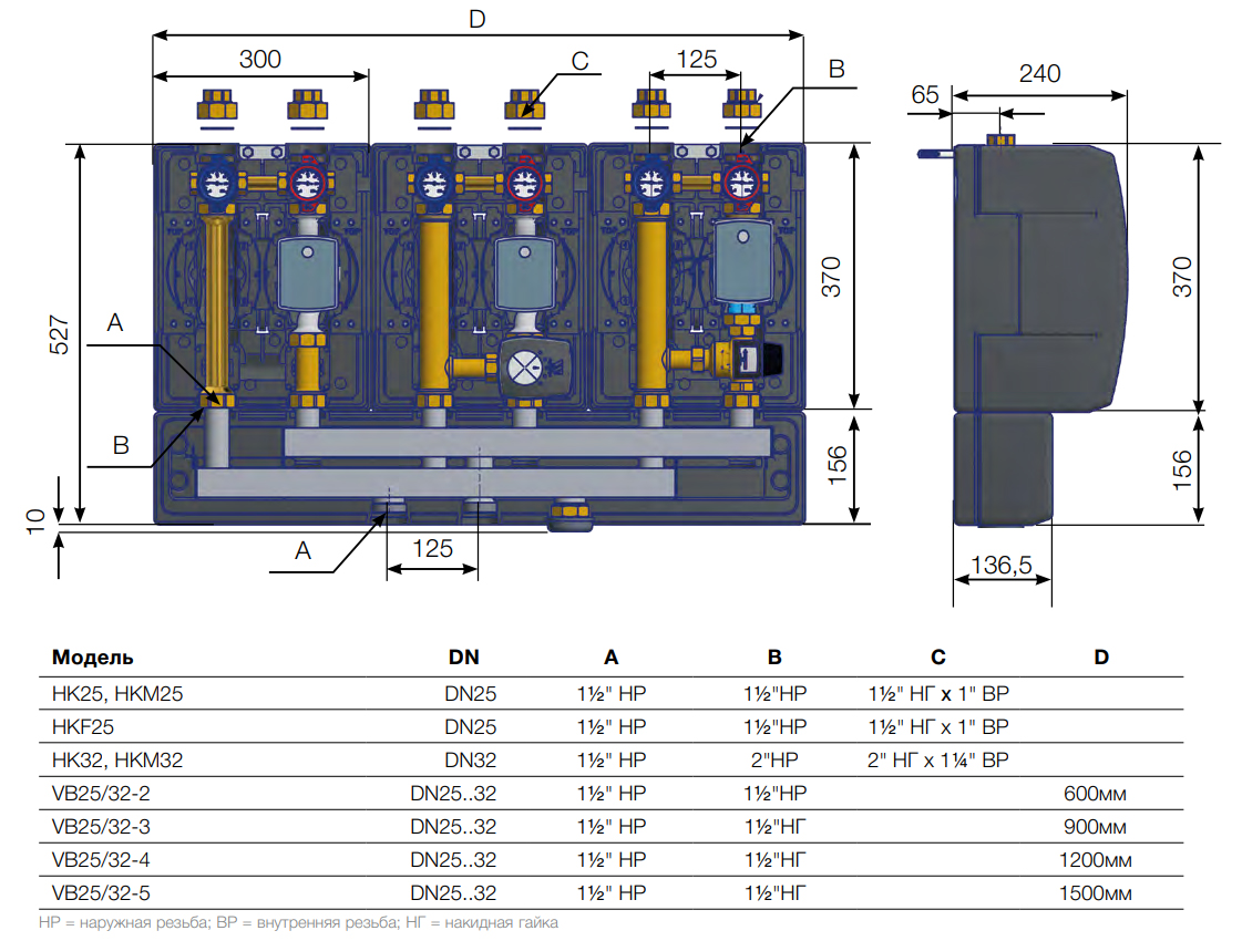 - G 1"1/2 HP и фитинги: G 1"1/2 накидная гайка х G 1" ВР