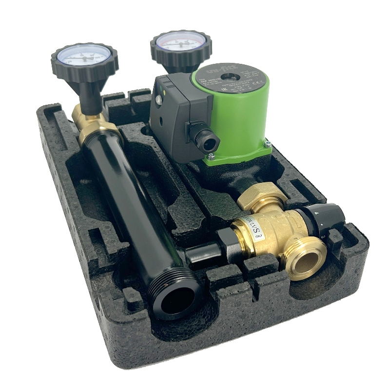 Насосные группы быстрого монтажа (далее ГБМ) Uni-Fitt предназначены для создания многоконтурных систем отопления с индивидуальными насосами в отдельных контурах. Такие системы характеризуются высокой стабильностью работы, повышенными комфортностью и надёжностью. Модульная конструкция обеспечивает компактность и простоту монтажа. ГБМ Uni-Fitt поставляется в четырёх вариантах, в каждом варианте – с насосом или без (в этом случае требуется установка соответствующего насоса).