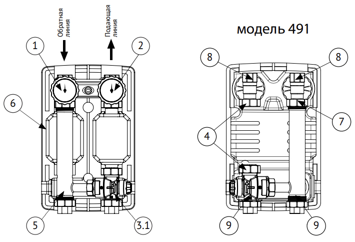 Насос группы обеспечивает циркуляцию в контуре отопления.